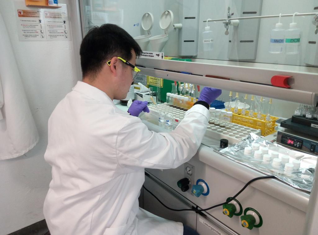 在李楠楠的眼中,实验室永远是最踏实的地方,每次只要一来到实验台前,无论多么浮躁的内心都会立刻宁静下来。八年师大岁月,寒来暑往,他一多半的时光都是在实验室里度过的。进入研究生阶段以来,他积极主动参加导师主持的国家级、省部级课题,其中以第1参加人身份主持参加了山东省沉积矿产重点实验室的开放课题1项,以参加人身份参与国家自然科学基金面上项目2项,吉林省科技厅项目1项。在导师介冬梅教授的指导与帮助下,李楠楠同学在专业理论基础、实验原理、实验测试、结果分析以及论文撰写等方面步步为营,认真对待每一组数据,认真撰写每一篇论文。
